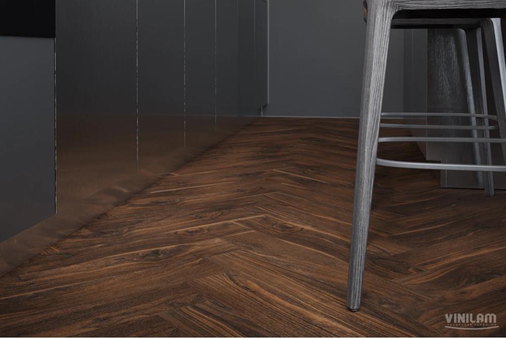 Виниловый пол Vinilam Vinipol Herringbone 7 мм интегрированная подложка 9977 Паркет Да Винчи